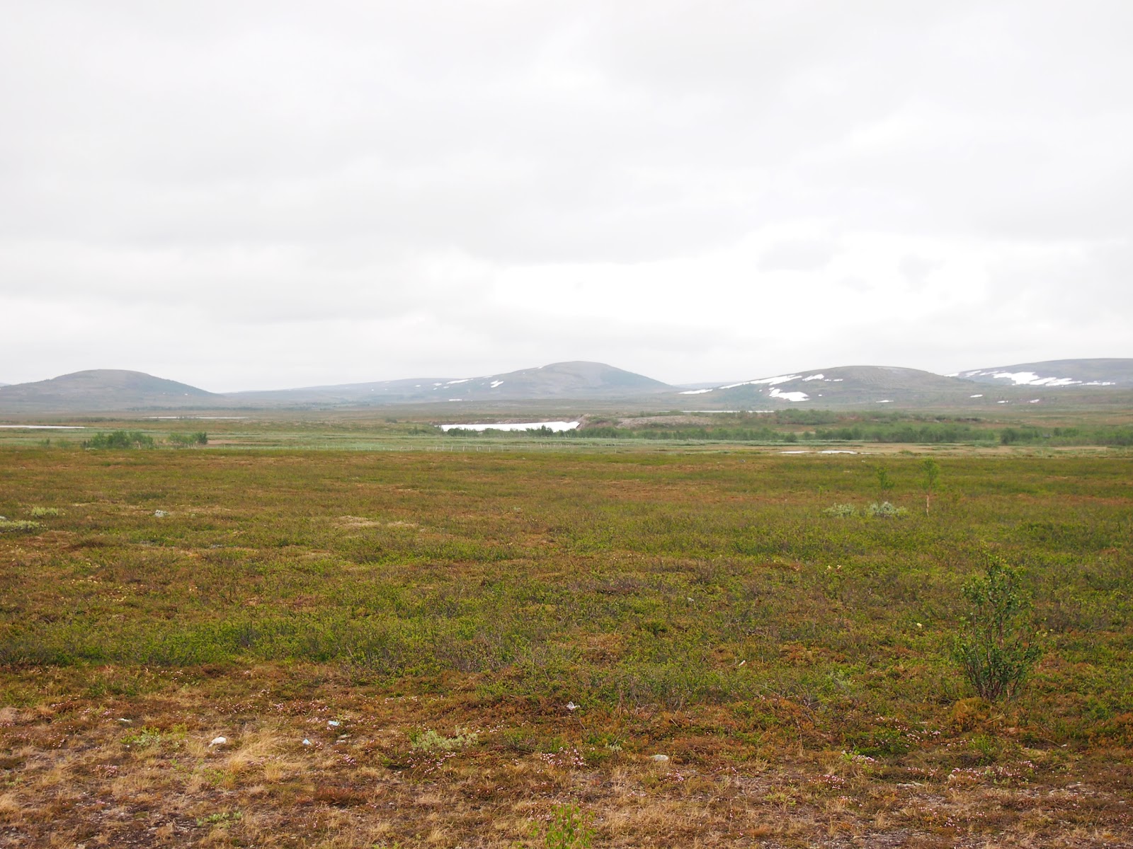 Es wird zunehmend bewölkter und kuehler, wobei Sonne und Wind das Tarp am Rastplatz blitzschnell trocknen. Weiter auf und ab. Ich finde einen windigen (moskitofreien...) Platz. Getrocknetes Rentierfleisch und Wasser hole ich mir bei den nahen Verkaufsständen der Samen an der Strasse. Zwei Wohnmobile kommen hinzu und bleiben auf den windgeschuetzten Flächen näher an der Strasse. Die Schweizer haben mich heute schon mehrmals gesehen und wir unterhalten uns kurz (... die Tochter war 3 Monate mit dem Rad auf Neuseeland!).
